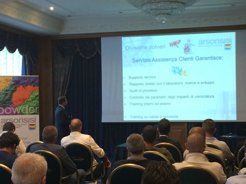 Cristoforo Brendas, Responsabile Commerciale Vernici in Polvere Italia, ha voluto sottolineare come la qualificata assistenza tecnica Arsonsisi svolga un continuativo lavoro di supporto al cliente in tutte le fasi di vendita e crei un filo diretto con il laboratorio.